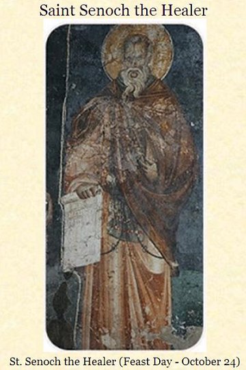 Saint Senoch was a Taifal abbot and saint. He was born in Tiffauges, in Poitou. Senoch founded a small monastery about the year 536, making himself abbot over three disciples. They established themselves at a place now called Saint-Senoch, which was the site of some Roman ruins. St. Senoch was famous for his acts of austerity, such as enclosing himself within a four-foot space so narrow that he couldn't move the lower half of his body. This won him the undying love of a vast populace. They built their house in some Roman ruins and there fasted or lived on bread and water. Senoch was friendly with Bishop Euphronius of Tours, and when that saint died, went to his funeral and there met Euphronius's successor, Saint Gregory of Tours.