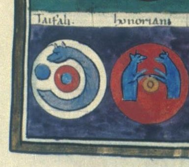 The Taifalos Coat of Arms has been developed incorporating the two shield patterns which has represented the Taifali peoples during their time serving the Roman Empire. The Dragon and Pearl device used on the shield of the Equites Honoriani Taifali Iuniores and also the Equites Honoriani Taifali seniores which used blue mirrored bears holding the shield boss, as illustrated in the Notitia Dignitatum. The Comites Taifalos a military Unit which served under the Eastern Byzantine Empire and stationed in the geographical location of Greece.