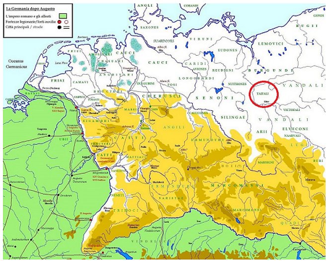 Some sources place the Taifali in Northern Europe around 10 AD as seen in the map below - authenticity of map is unknown